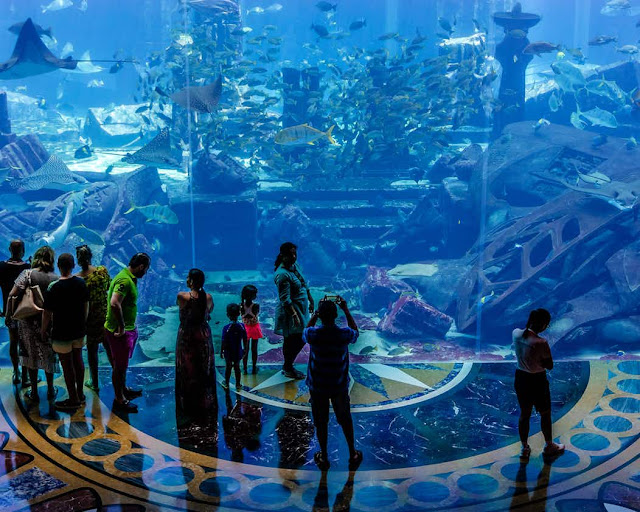 يمكنك الاستمتاع بالحياة البحرية في نزهة على الأقدام عبر الأنفاق الزجاجية في حوض ذا لوست شامبرز في فندق أتلانتس. إن أسماك القرش، سمك الراي اللساع، أسماك الضاري، الكركند فرس البحر ليست سوى بعض المخلوقات التي ستواجهها وجهاً لوجه في هذا العالم المغمور بالمياه.