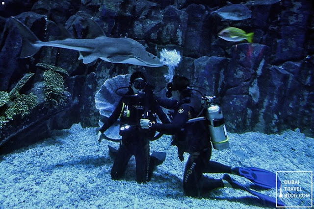 يمكن للباحثين عن مزيد من الاندفاع في الأدرينالين اختيار تجربة الغوص مع أسماك القرش من خلال الانغماس في أعماق الحوض الذي تبلغ سعته 10 ملايين لتر للقاء مع أسماك قرش النمر الرملي في أكواريوم دبي وحديقة الحيوانات المائية.