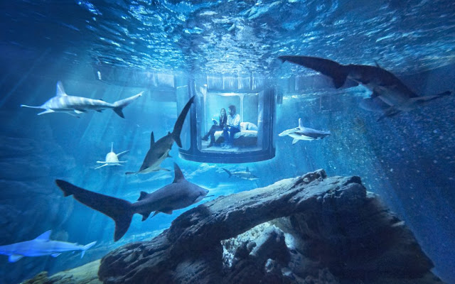 بعد رؤية الأماكن المختلفة في لنكاوي من السماء، فقد حان الوقت للتنزه تحت الماء. نحن لا نطلب منك الذهاب للغطس في البحر، نحن نتحدث عن النفق الذي يبلغ طوله 15 متراً تحت سطح الماء في عالم لنكاوي المائي، حيث يمكنك الاستمتاع بمناظر أسماك القرش وسمك الراي اللاسع والسلاحف الخضراء عن قرب.