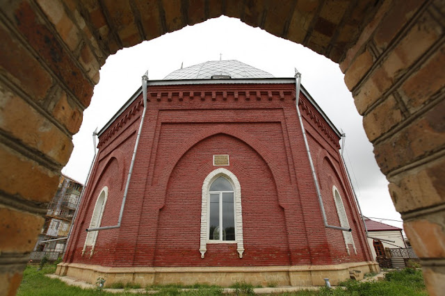 هذا المسجد الجميل هو أكثر المباني التاريخية تميزاً في قوبا، وهو مطلي باللون الأحمر الباهت ويعلوه قبة معدنية تشكل نقطة مركزية مثل خوذة بروسية.